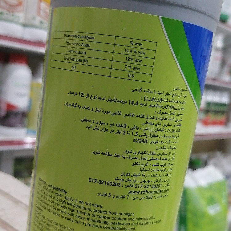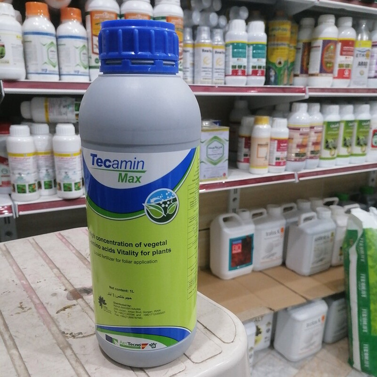 کود کشاورزی تکامین مکس Tecamin Max، آمینو اسید، برای غلبه بر استرس های محیطی، تعدیل کننده عناصر غذایی، محلول پاشی 1/5 تا 3 لیتر در هزار لیتر آب