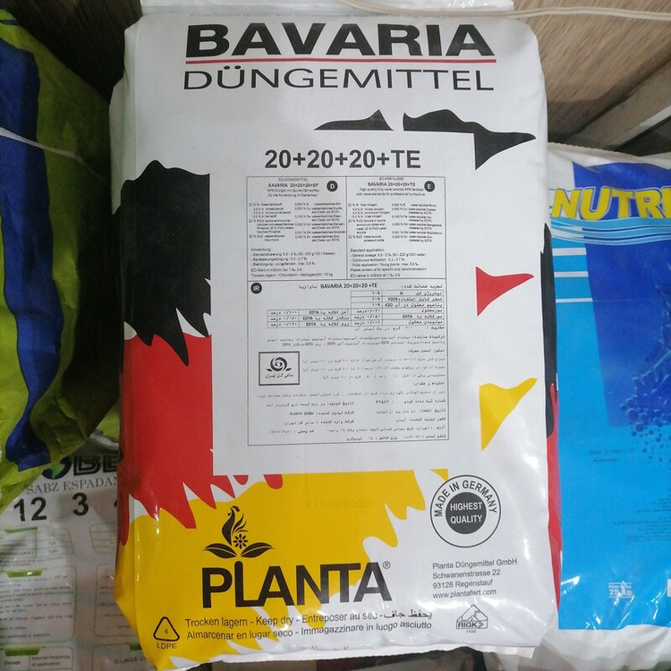 کود کشاورزی باواریا سه بیست 20 20 20 TE حاوی ازت فسفر قابل استفاده و پتاسیم محلول در آب ساخت آلمان کیفیت عالی