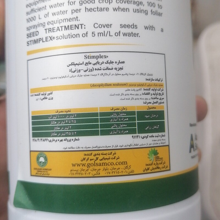 کود جلبک استیمپلکس Stimplex محرک رشد رویشی و زایشی و محرک رشد ریشه تسریع در فرآیند رنگ دهی و افزایش سایز میوه، ریشه زا