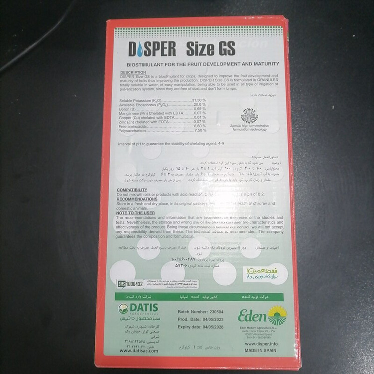 کود کشاورزی دیسپرسایز افزایش سایز میوه بهبود خواص طعم میوه و بهبود کیفیت میوه ی برداشت ، ساخت اسپانیا