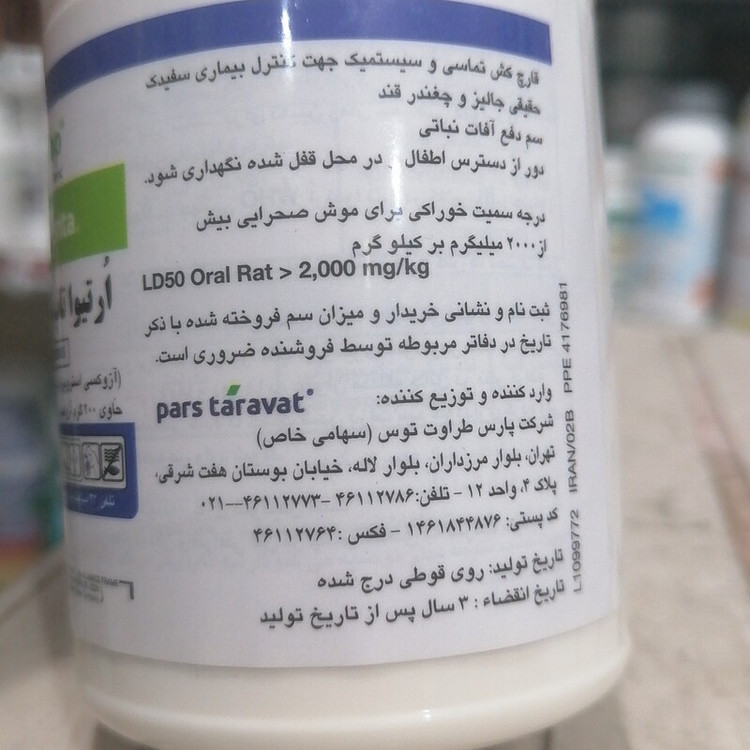 سم کشاورزی قارچ کش تماسی و سیستمیک ارتیواتاپ Ortiva Top جهت کنترل بیماری سفیدک پودری، 250 سی سی، تولید شرکت سینجنتا، Syngenta, انگلستان
