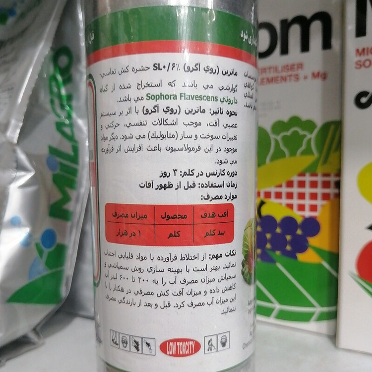 حشره کش ارگانیک ماترین، واردات شرکت گیاه پرنیان روی اگرو دور کننده تریپس، نیم لیتری پت