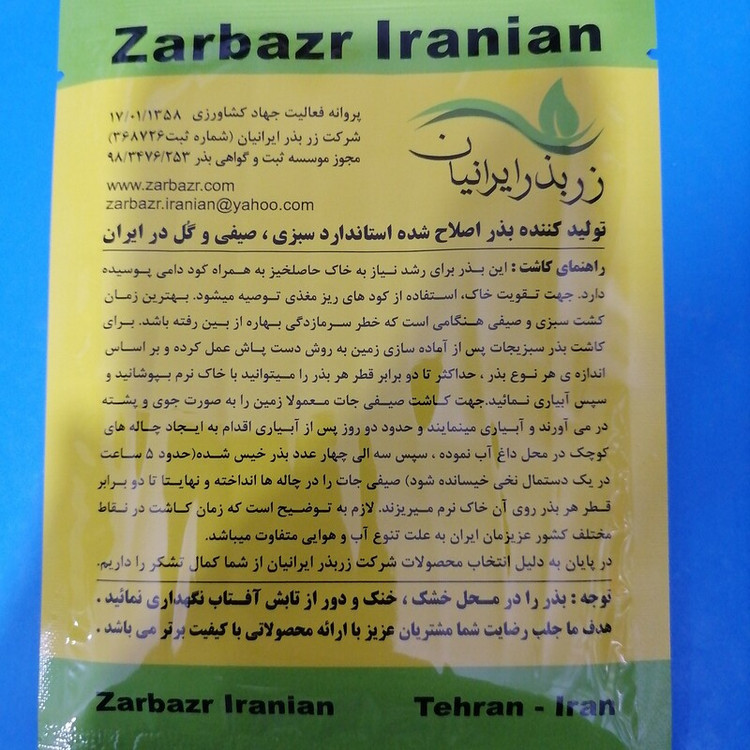 بذر سبزی ریحان سبز، شرکت زر بذر ایرانیان با قوه نامیه بالا