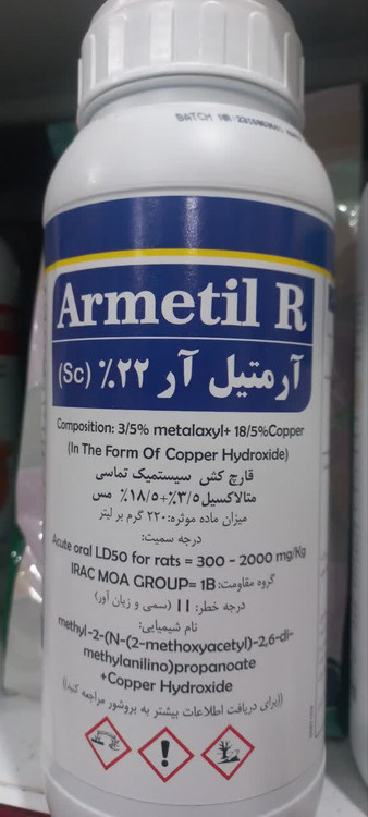 قارچ کش سیستمیک آر متیل آر حاوی 3.5 درصد متالاکسیل و 18.5 درصد مس علیه بیماری سفیدک دروغی