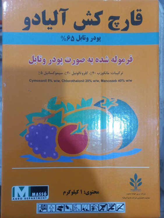 قارچ کش آلیادو شرکت ماسو اسپانیا پودر وتابل یک کیلوگرمی کنترل گموز مرکبات و آلترناریا گوجه و سیب زمینی