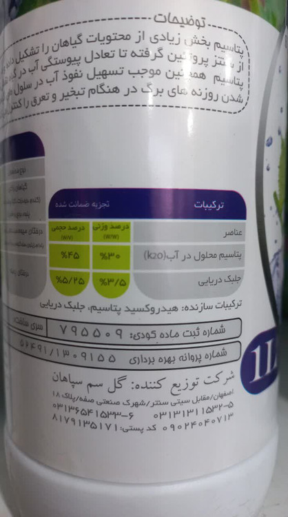 ترکیب کا 45 همزمان باعث درشت شدن و به خصوص فرآیند رنگ گیری بهتر کامل تر و سریع تر میوه می شود محلول پاشی 1.5 تال 2 در هزار و آب آبیاری 3 تا 5 لیتر در هر هکتار