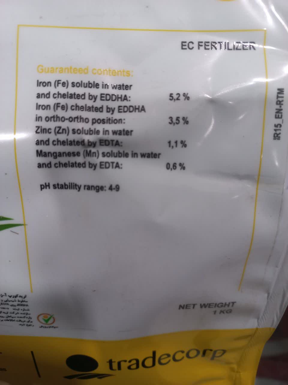 آ زد سینرژی تریدکورپ با کیفیت ترین 3 عنصره موجود در بازار ایران حاوی 5.2 درصد آهن کلات ، 3.5 درصد روی کلات ، 1.1 درصد منیزیم کلات شده با قابلیت محلول پاشی و مصرف خاکی تاریخ انقضا محصول 19 ژوئن 2024 می باشد ولی به علت پودری بودن محصول و نوع بسته بندی(عدم نفوذ نور) از نظر کیفیت آنالیز ایرادی ندارد