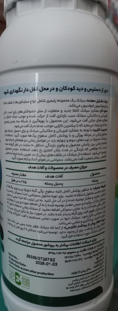 سم حشره کش و کنه کش سیلتک وادات بصیر شیمی قوطی نیم لیتری