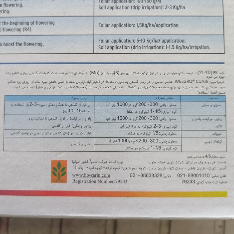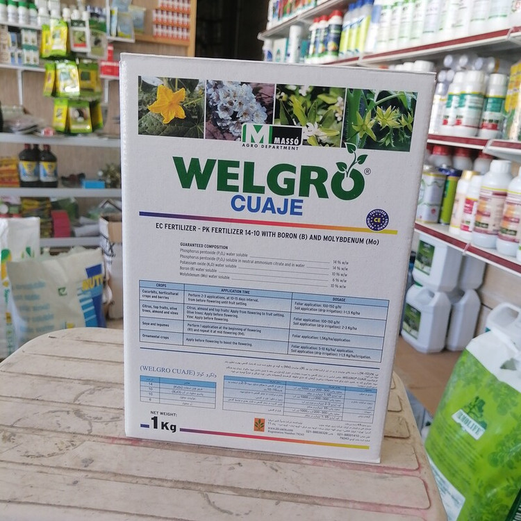 کود ولگروکواژ WELGROCUAJE باعث گلدهی بهتر و تنظیم رشد میوه، جلوگیری از ریزش زود میوه، یک کیلویی