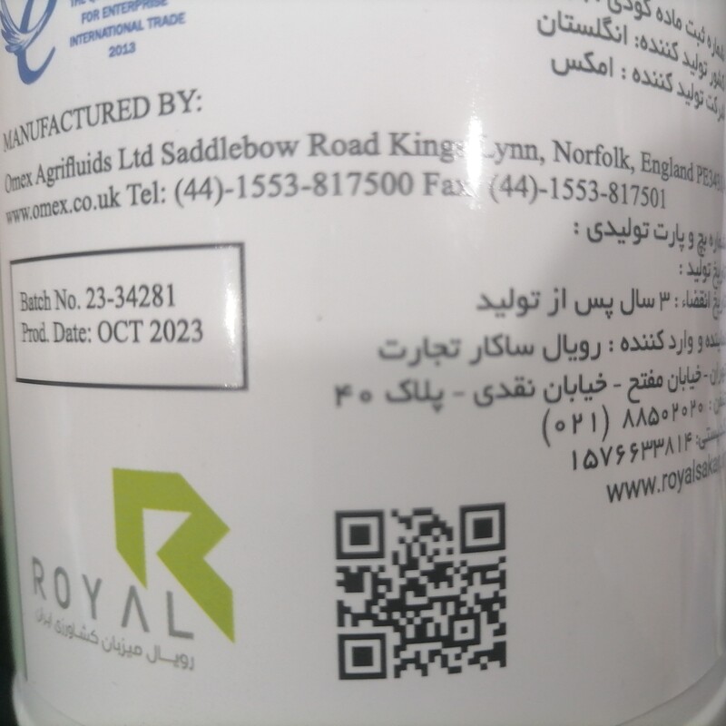 کود کشاورزی امکس اومکس بیو 20 گُلد انگلستان X BIO 20 Gold، تسریع رشد، بهبود کیفیت و افزایش عملکرد میوه، حاوی آمینو اسید