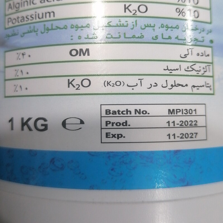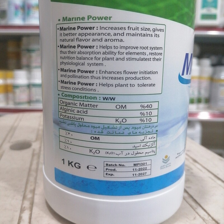 کود کشاورزی مارین پاور Marine power کود جلبک عالی یک کیلویی رنگ آوری و درشتی میوه محرک رشد رویشی و زایشی یک کیلویی