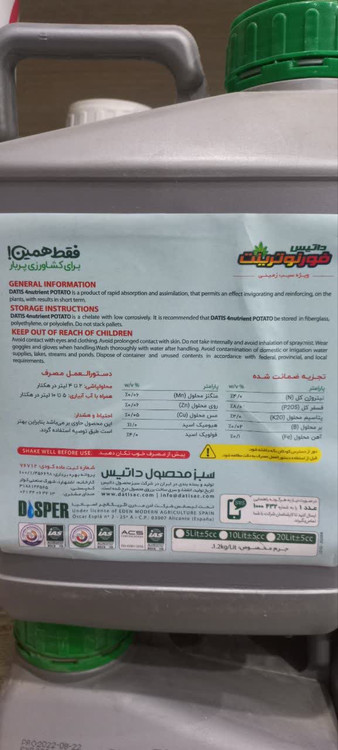 کود فورنوترینت سیب زمینی مایع 5 لیتری ، باعث بهبود خواص شیمیایی و ساختمان فیزیکی خاک و موجب افزایش جذب عناصر میکرو و ماکرو