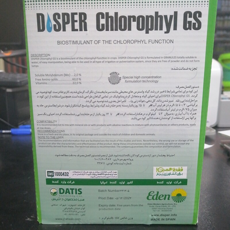 کود کشاورزی دیسپرکلروفیل شرکت ادن اسپانیا نیم کیلویی حاوی ویتامین ها و پلی ساکاریدهای گیاهی