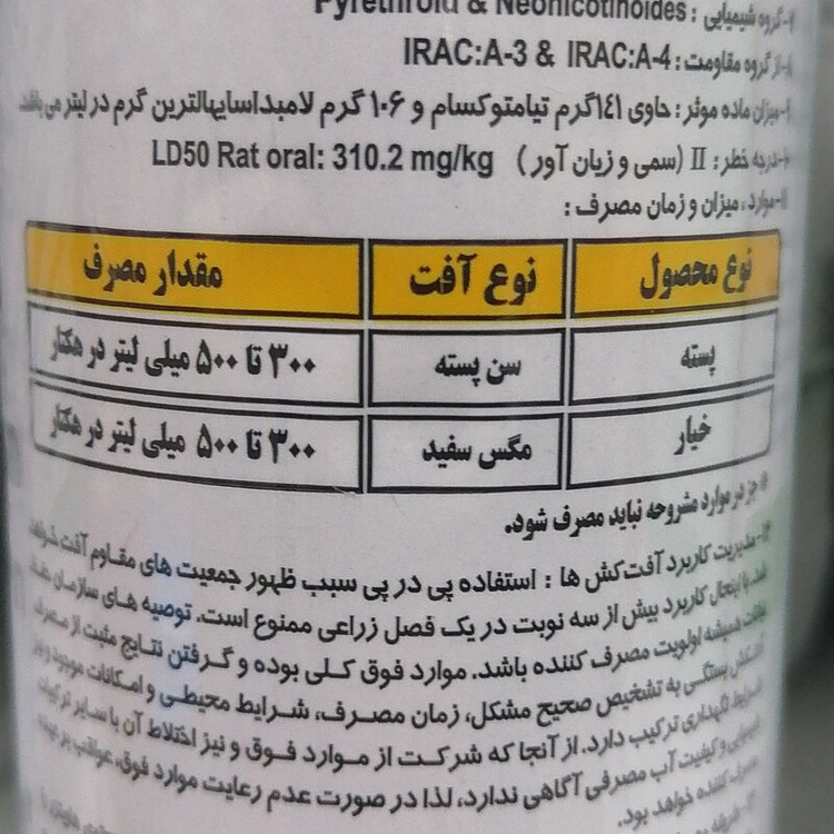 حشره کش سیستمیک و تماسی گوارشی برای مبارزه سفید بالک، تریپس، شته، سن پسته، مگس سفید