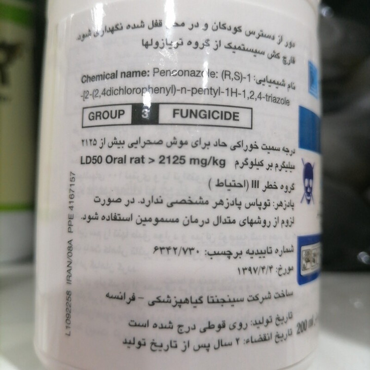 سم قارچ کش توپاس Topas شرکت سینجنتا جهت مبارزه با بیماری سفیدک پودری، 200 سی سی، ساخت شرکت سینجنتا فرانسه، دویست 200 سی سی