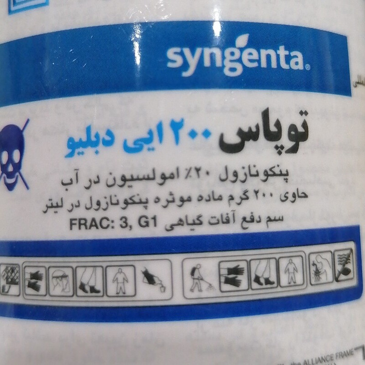 سم قارچ کش توپاس Topas شرکت سینجنتا جهت مبارزه با بیماری سفیدک پودری، 200 سی سی