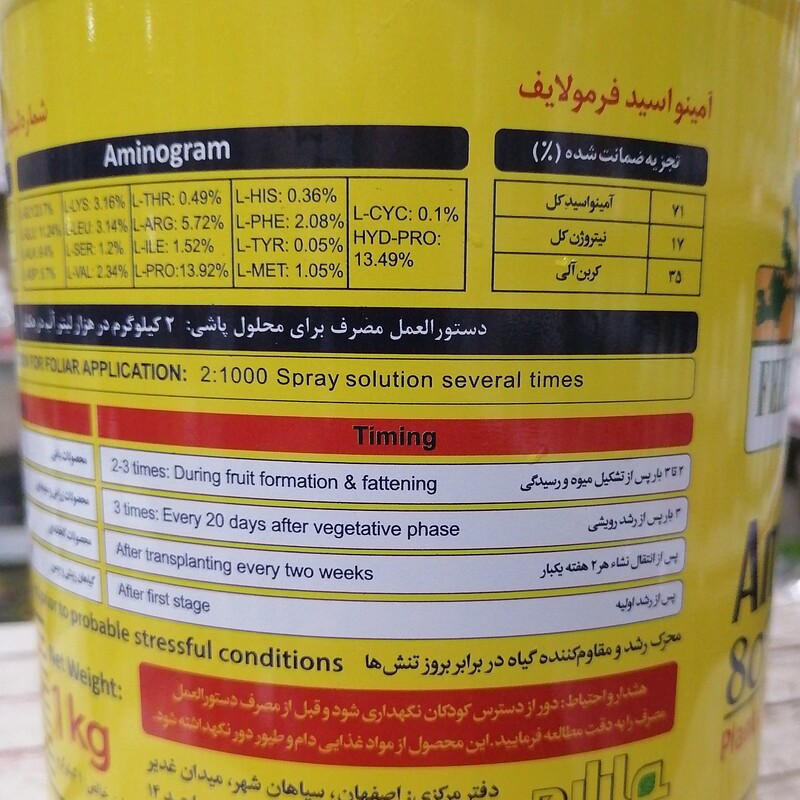 کود کشاورزی آمینو اسید فرمولایف منجر به ارتقای مقاومت گیاه در تنش و افزایش فتوسنتز یک کیلوگرمی