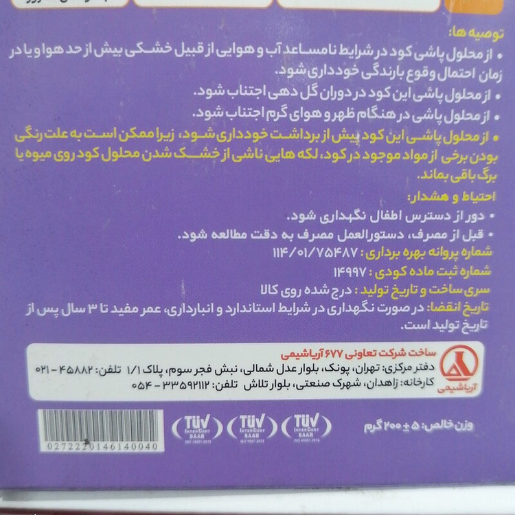 کود آلگورا بهبود سلامت و رشد گل و گیاه و سبزی و صیفی و درختان میوه، غلبه بر تنش، 200 گرمی